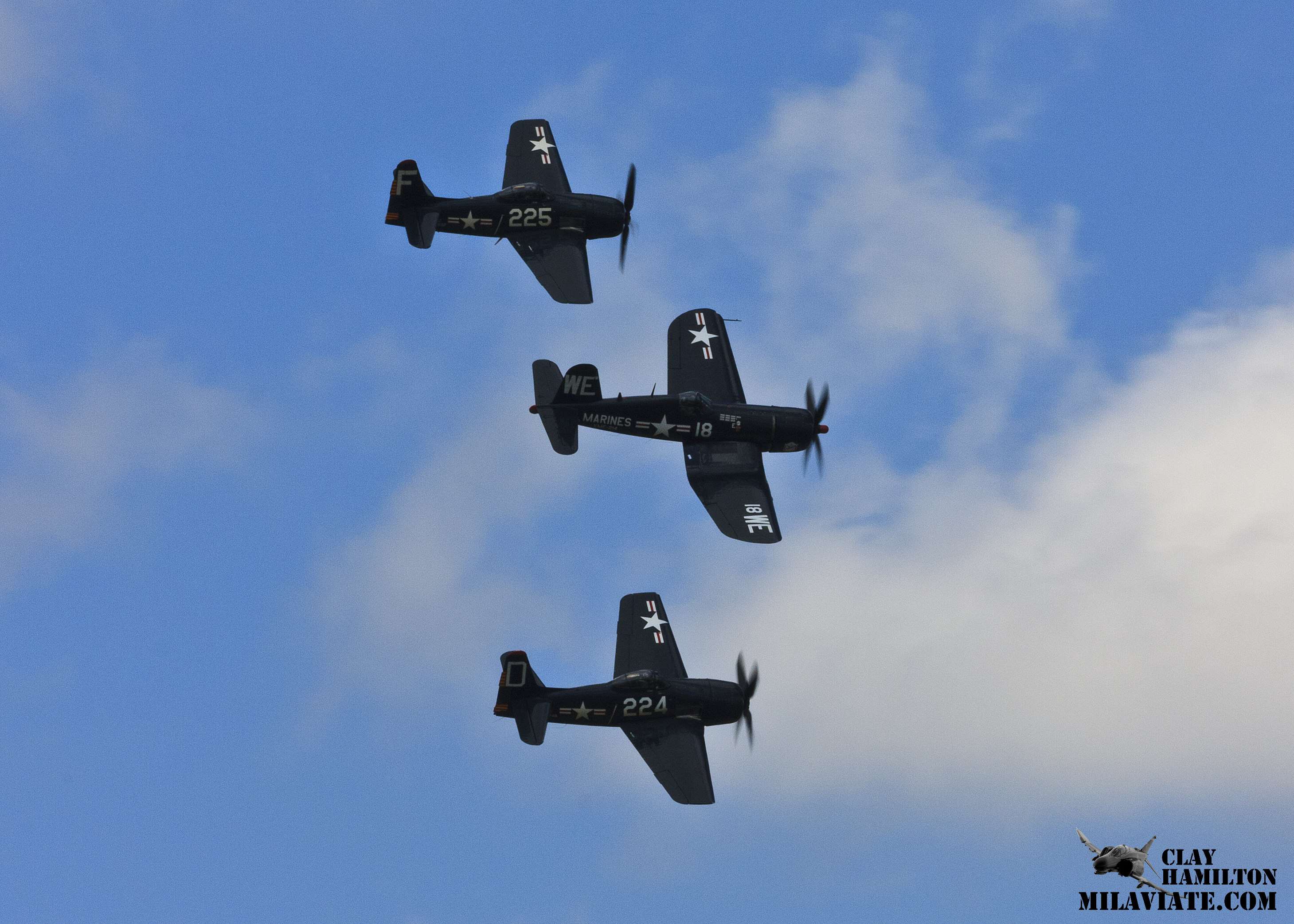 The first F8F prototypes were ordered in November, 1943, and first flew just nine months later. The first production models were delivered in February, 1945, and was operational with Fighter Squadron 19 (VF-19 “Satan’s Kittens”) on May 21, 1945 but World War II was over before the aircraft saw combat.